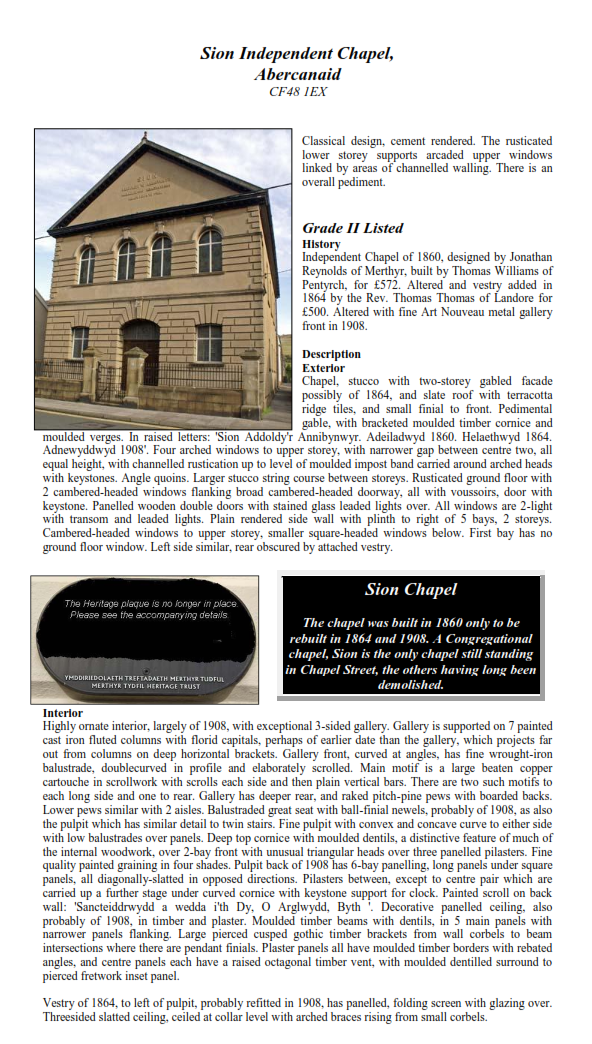 Sion Independent Chapel, Abercanaid